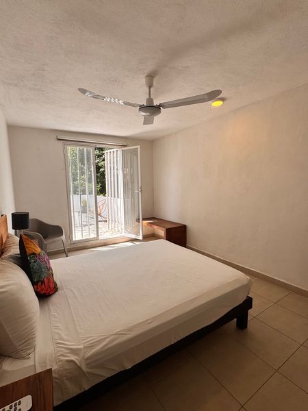 2 aires acondicionados en las recamaras y ventiladores de techo.