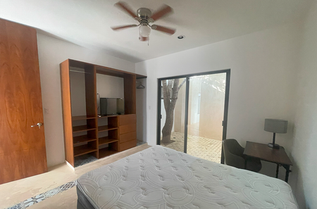 - Recámara 2 equipada con closet, aire acondicionado, ventilador de techo, patio interior y baño completo.