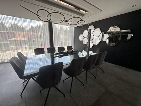 Amplia sala con chimenea y salida a la terraza y al jardín , comedor, estudio u oficina, la cocina muy equipada para sorprender a los comensales con platillos exquisitos, muros y pisos italianos, carpintería de madera muy cuidada en toda la casa, luminaria italiana novedosa, calefacción hidrónica, cuenta con controles digitales , 4 recámaras con baño y vestidor, 2 baños de visitas, 2 clósets de blancos, 2 bodegas, sótano con una espacio ideal como family, bar y cava, cochera para 4 autos y para carro de golf o motocicletas. Área de lavado y cuarto de servicio.