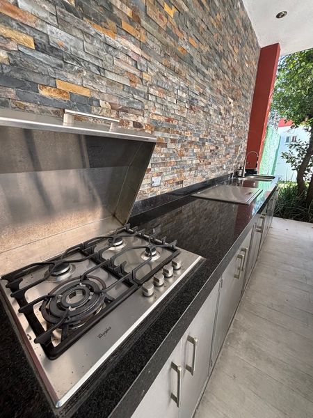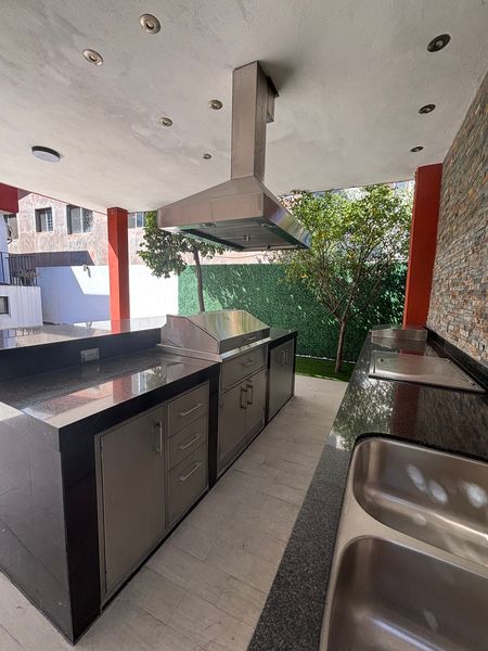 Incluye cocina en cuarzo y madera de haya con puertas de cierre lento, barra de granito negro y asador de acero inoxidable hecho a la medida, minisplits en recamaras y áreas comunes.