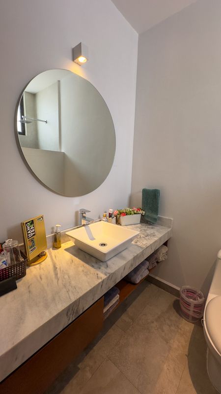 - Lavabos Castel montados en granito polar/negro en baño visitas. Todos con espejos completos y en baño área social, retroiluminados.
