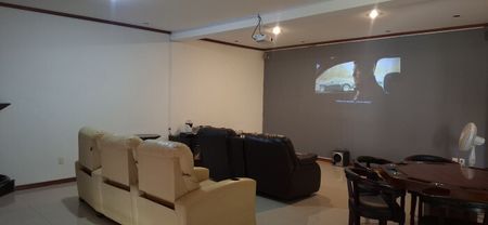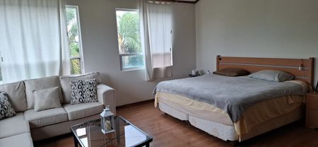 En cuanto a equipamiento y comodidades, dispone de: portón automático, estacionamiento para 8 autos (4 techados), planta de luz, cámaras de seguridad, dos bodegas para herramienta/jardinería y baños de uso común en áreas sociales.
