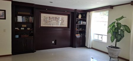 En su interior encontrarás: cocina equipada con alacena, cocineta de visitas, sala y comedor principales, tres salas adicionales, oficina/estudio, patio interior, cuarto de lavado y recámara de servicio con baño.