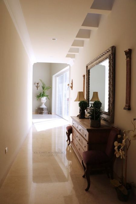 LA CASA TIENE UN RECIBIDOR MUY AMPLIO CON VISTA A LA ALBERCA, MEDIO BAÑO DE VISITAS Y PASILLO QUE CONECTA CON LA COCINA EQUIPADA MUY AMPLIA CON ALACENA, PASILLO A LA SALA Y COMEDOR CON VISTA AL JARDIN.