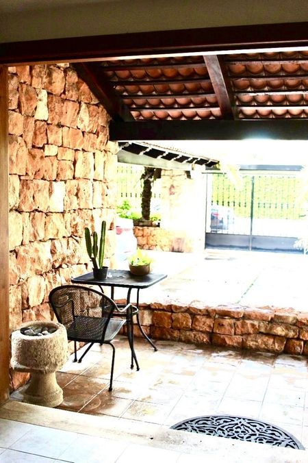 -Garage con capacidad para 5 autos , con techo para 3 .