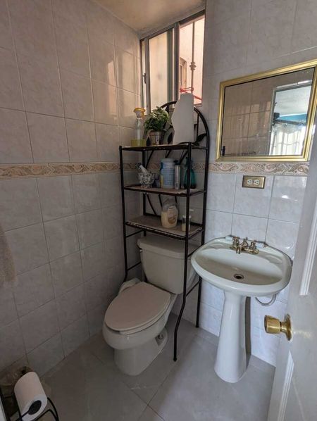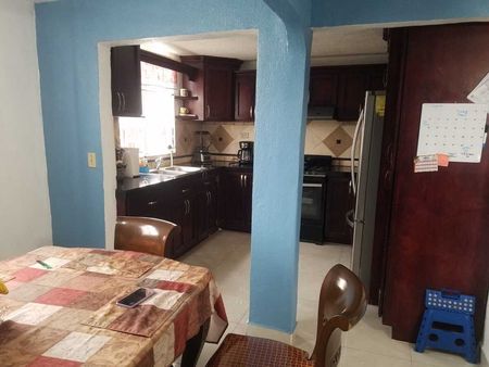 En primer piso cuenta con 1 recámara con baño con regadera, sala, cocina con muebles, cuarto de lavar y 1 medio baño