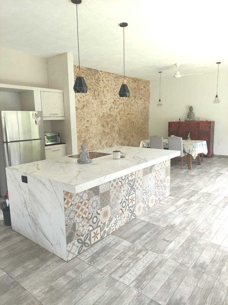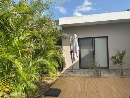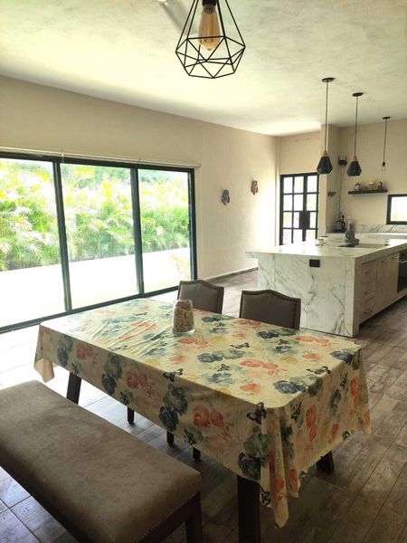 Ubicada a 10 minutos del norte de Mérida, rumbo a Progreso, esta casa cuenta con amplios espacios, techos a doble altura y agradable iluminación natural.
