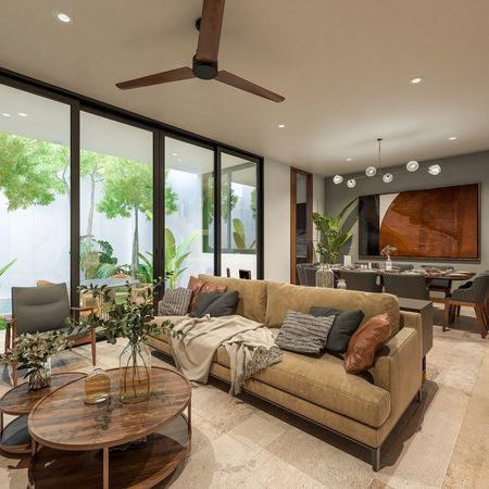 Sala y comedor con vista la jardín