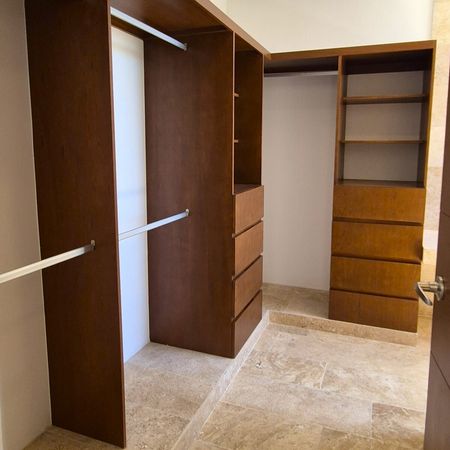 Una recámara con baño completo y clóset vestidor