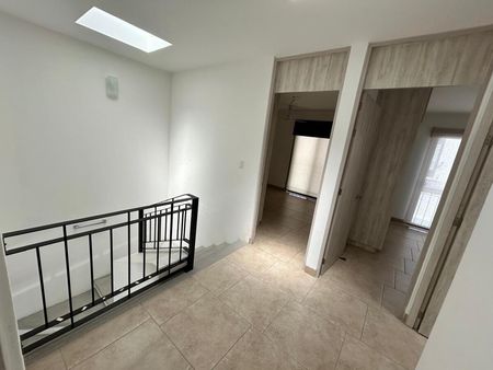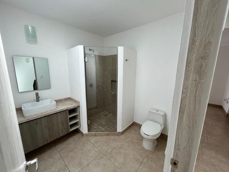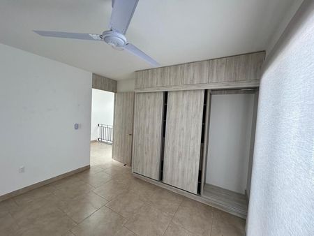 La recámara principal ofrece privacidad con walk-in closet y baño completo con cancelería de vidrio templado. Dos recámaras secundarias, cada una con closet, comparten un baño completo y cuentan con balcones decorativos que aportan luz y estilo.