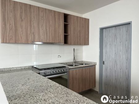 Sala - comedor - cocina con granito y gavetas, estufa y campana