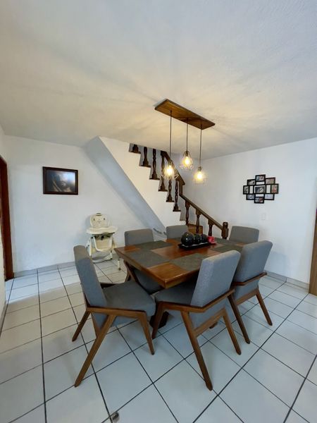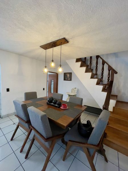 Cuenta con excelentes terminados. En planta baja: cochera para 2 autos, cocina integral, sala con chimenea, comedor, una recámara con clóset, baño completo, cuarto de lavado, patio, asador y terraza.