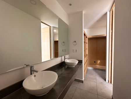 Recámara principal con área de clóset vestidor, baño completo y balcón.