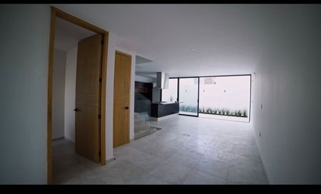 La casa cuenta con cochera para dos autos, amplia área de sala comedor, cocina integral con barra de cuarzo, y vista al patio, medio baño para dar servicio al área social, bodega.