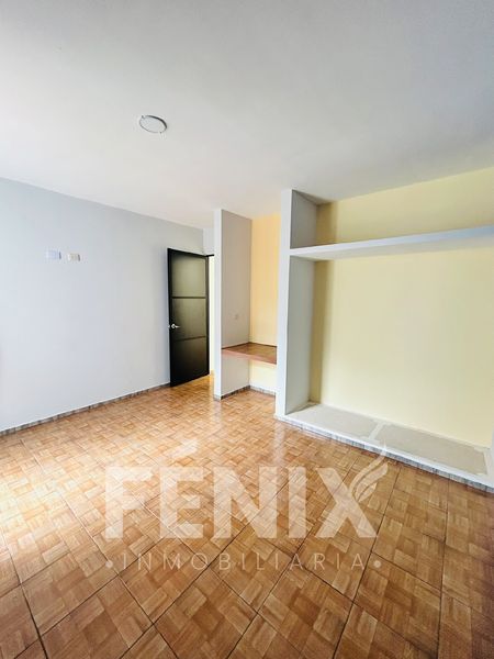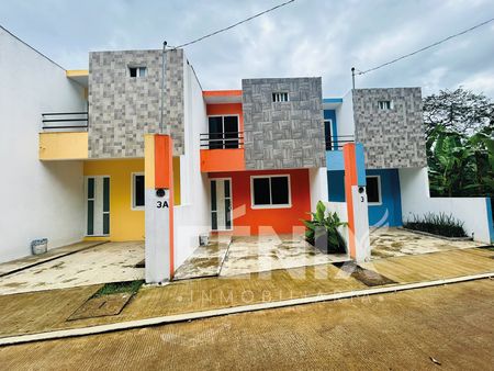 *Planta baja: cochera para 1 auto, espacio de sala, medio baño, espacio de comedor, cocina con barra y tarja, área de servicio.
