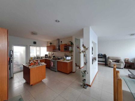 Amplia sala, comedor y cocina con 2 ventanales que conectan a una terraza y proporcionan abundante luz a la planta baja