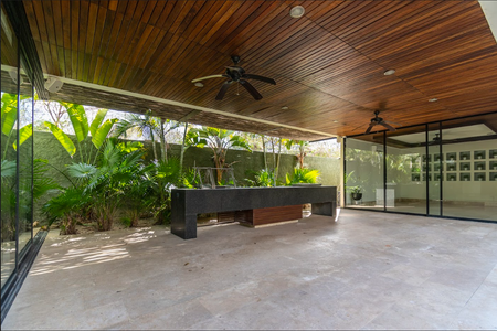 Hermosa terraza techada con asador y mesa para tepanyaki