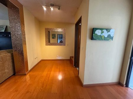 Sala, comedor y recibidor con piso duela