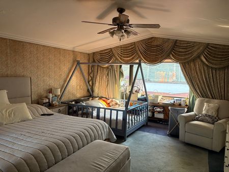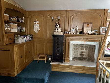 Recámara principal con chimenea, walk-in closet y baño completo con jacuzzi.