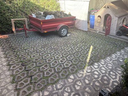 Bodega amplia al fondo del jardín.