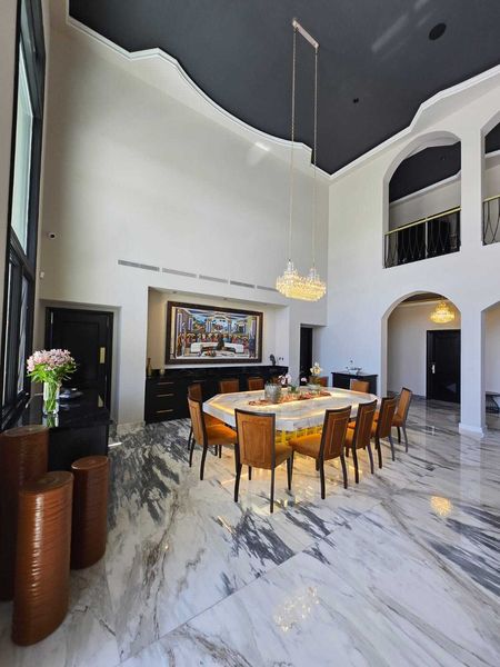 Esta propiedad de ensueño cuenta con una superficie total de 1,450 metros cuadrados, distribuidos en 5 recámaras, 10 baños, 2 recámaras de servicio y 12 espacios para estacionamiento.