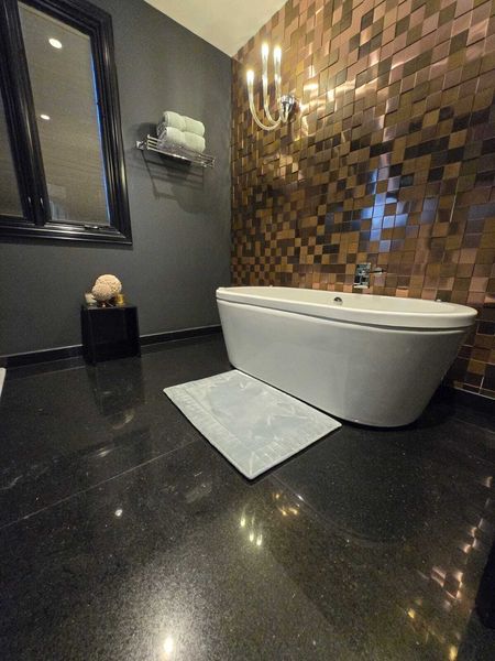 - Calacatta Nero marble floors and polished concrete