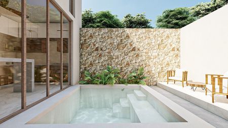 Otros Espacios: Cuarto de lavado equipado. Piscina: Con acabado Chukum e iluminación arquitectónica, perfecta para relajarse.