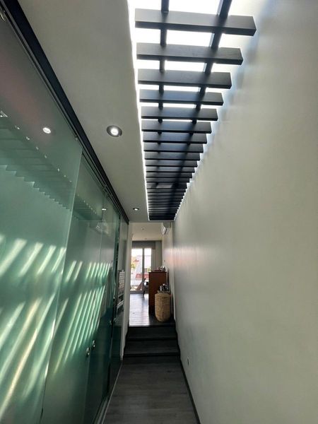 - Amplia sala con cancelería de piso a techo en aluminio de primera calidad, permitiendo gran luminosidad y frescura.