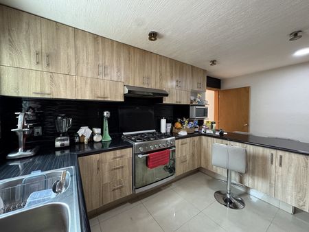 Distribuida en dos niveles, cuenta con 5 recámaras (una en planta baja) y 4.5 baños, cocina integral, sala y comedor con gran iluminación natural. Incluye cuarto de lavado, bodega, acceso de servicio y dos patios: uno oculto para tendido y otro perfecto para reuniones al aire libre.