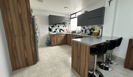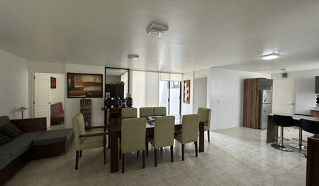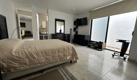 Adicionalmente la casa cuenta con un departamento con entrada independiente, sala-comedor, cocina, habitación principal con baño completo y estudio. Este departamento se puede unir con el primer piso si es necesario.