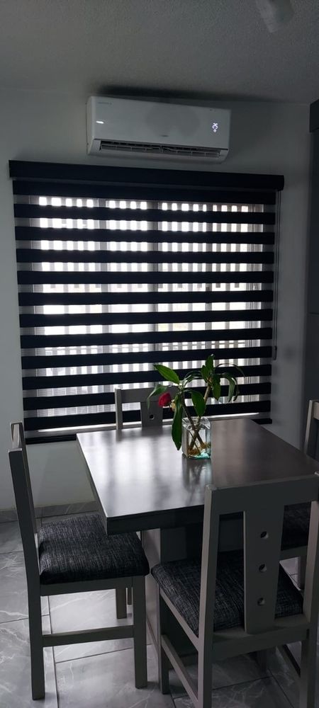 Venta de casa en fraccionamiento Vilanova, consta: 2 recámaras, sala, cocina, comedor, 1 baño, patio con sobra, celdas solares, Minisplit y amueblada.