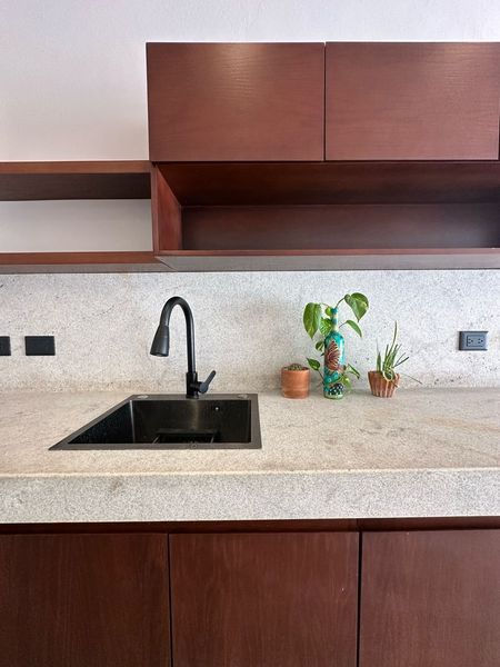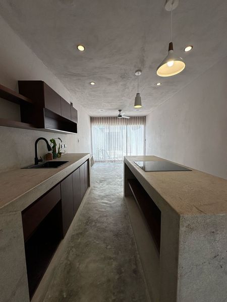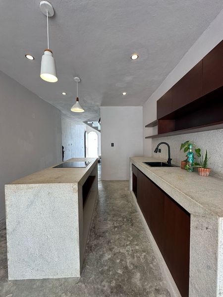 -Cocina equipada con parrilla eléctrica, barra desayunadora y acabados de calidad.