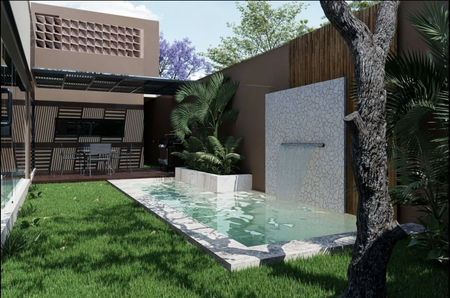 Piscina con cascada y sistema de filtrado