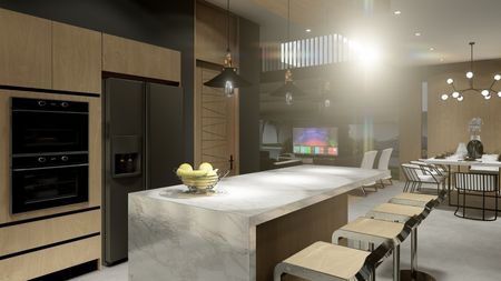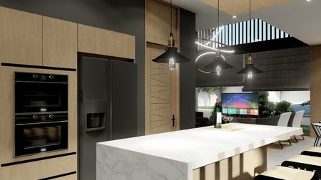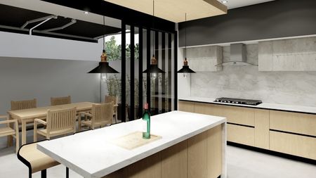 En planta baja cuenta con : cocina integral con terminados en granito, Torre de hornos ,amplia sala, comedor con techo en doble altura, estudio, cochera para 2 autos con opción de ampliar hasta 4.