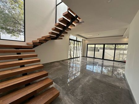 PB: cochera para 3 carros, sala, comedor, lavanderia, cuarto de servicio, recámara con baño vestidor, jardín exterior e interior