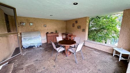 Además, la casa cuenta con una cochera con capacidad para cuatro autos, proporcionando espacio y seguridad para los vehículos.