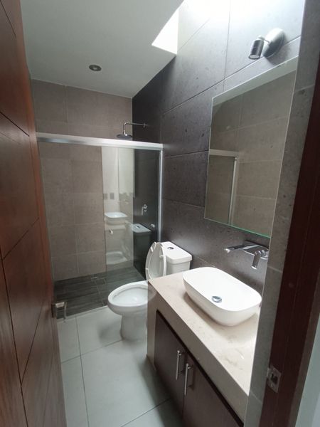 Vivienda moderna con distribución funcional y acabados de lujo. Muros térmicos y acústicos, doble fachada con acceso a estacionamiento de visitas y área verde.