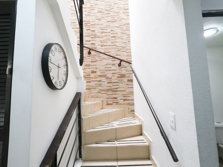 Bajó la escalera se oculta una alacena discreta creada para ampliar el espacio de almacenamiento