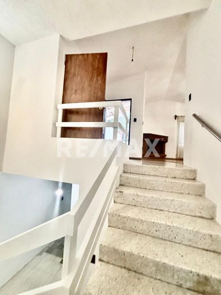Casa en venta para actualizar en desniveles, iluminada, con vista panorámica, en avenida principal. Acceso directo al jardín. Consta de 3 recamaras,5 1/2 baños, cocina integral con espacio para desayunador, amplio jardín con terraza y balcón y área techada, entrada con acceso directo a jardín, lugar de estacionamiento descubierto para dos autos con reja . Cuarto de servicio y área de lavado. Cuenta con bodega y cisterna ..
