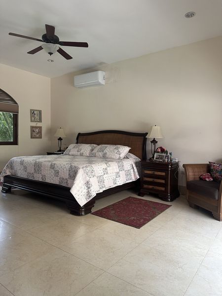 Recámara principal con closet vestidor y baño