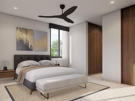 Recámara principal con closet vestidor y baño