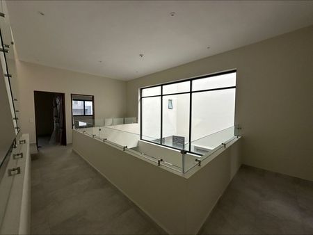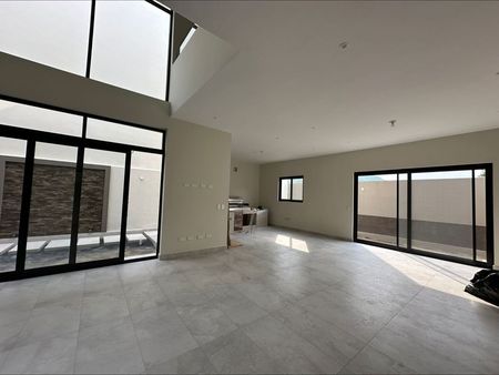 PB: cochera doble, sala comedor con doble altura, cocina, medio baño, area de asador, jardin
