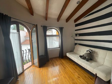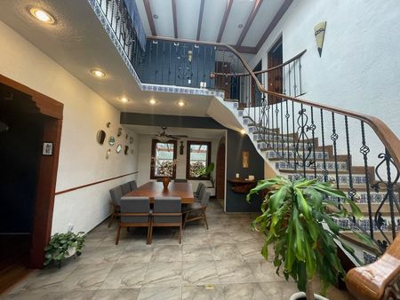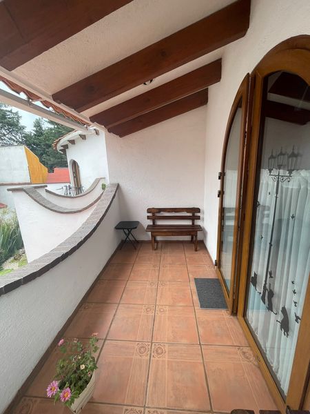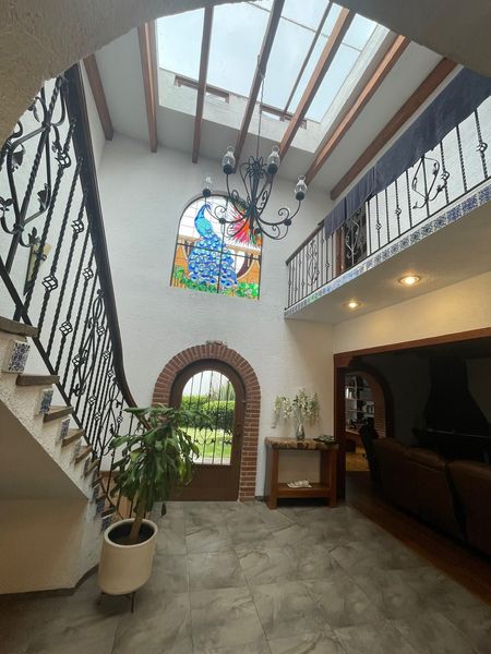 Linda y acogedora casa estilo mexicano, en privada de 5 casas, con hermoso jardin con fuente de piedra con estanque con peces y árboles frutales. Acogedora estancia con chimenea, estudio con librero de madera, amplio comedor, recibidor con domo que la hacia muy iluminada, con hermoso vitral de pavorreal. Cocina integral con barra de granito, lavavajillas y gabinetes de madera. Cava en el sotano con increible piedra decorativa.