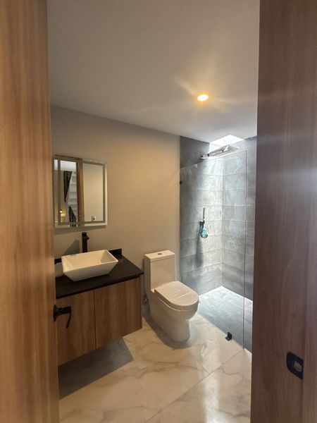 Recámara principal con walk-in closet y baño completo con doble lavamanos