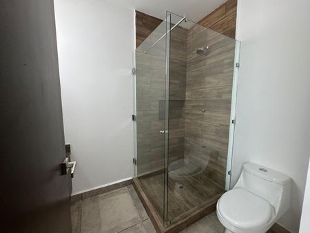 Recámara principal con vestidor con carpintería incluida y baño completo.