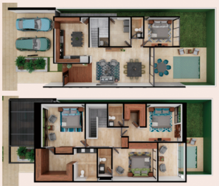 •Cochera para 2 autos apergolada