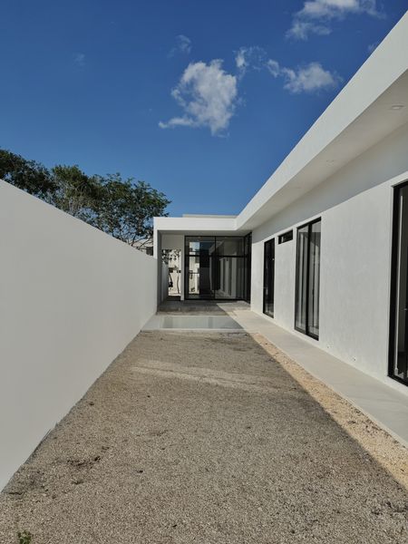- Pasillo y jardín con gravilla