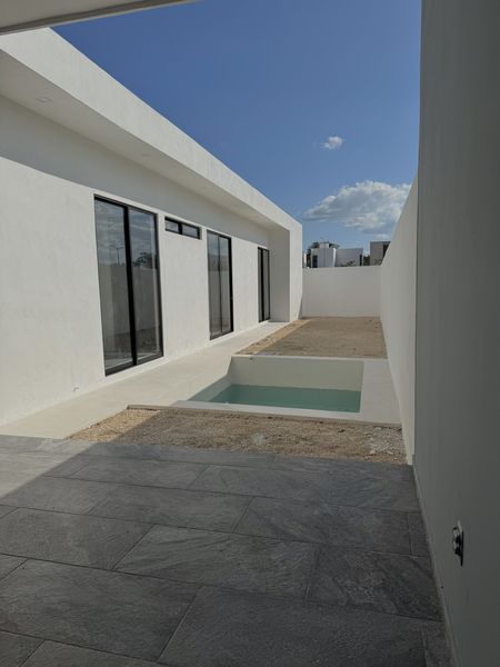 - Piscina y pasillo en acabado de pasta blanca sascab marca Kimicolor.