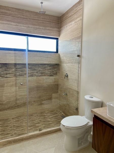Recámara secundaria con closet vestidor y baño.