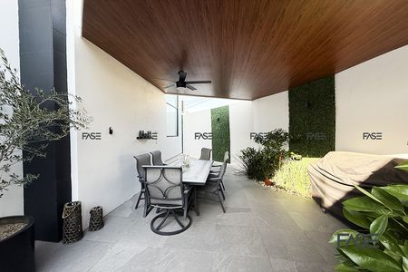 Patio frontal que conecta al comedor principal, techado con Deck exterior